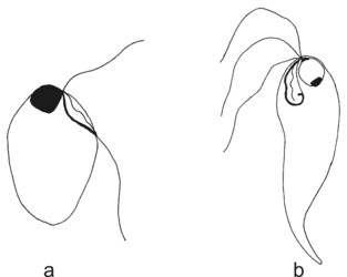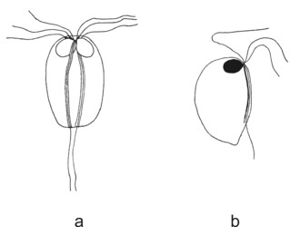 Figure 1. Diplomonads. a - diplozoic diplomonad Hexamita. b - unizoic diplomonad Enteromonas. © Ivan Cepicka