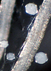 Comments | Roots of Plantago media (plantain) colonized with Glomus clarum. Note the hyphae and spores on the roots. |
