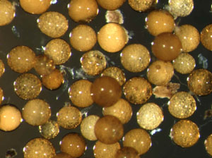 Figure 1: Spores of Scutellospora castanea (isolate BEG1, photo © Annemarie Brennwald). Spore diameter approximately 220 µm.