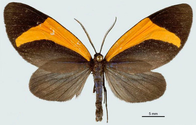 This high-altitude Peruvian species was long associated with Scea, based on superficially similar wing patterns. It flies with and is apparently involved in Müllerian mimicry with the pericopine arctiid Crocomela flammifera.References